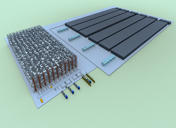 光伏產業(yè)在最近幾年時間里得到飛速發(fā)展,可分為光伏原材料如多晶硅、玻璃等以及光伏組件。大多數光伏產品是以整托形式出入庫,其重量較重,尺寸較大,且存儲量一般較大,給自動化物流設備帶來一定的挑戰(zhàn)。